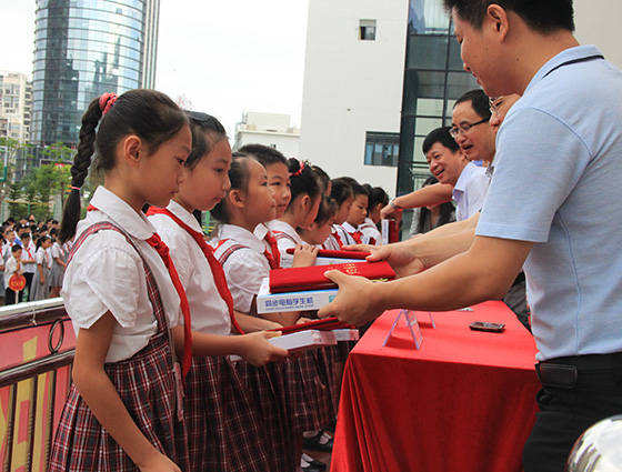 2015年7月10日,南岭石芽岭学校举行暑期散学典礼,宇宏集团应邀参加此次典礼并为优秀学生——石芽岭之星送去奖品。集团总裁莫凡、集团营销总经理赵成涛、集团客服中心副总经理易海军出席典礼,现场为优秀学生颁奖。