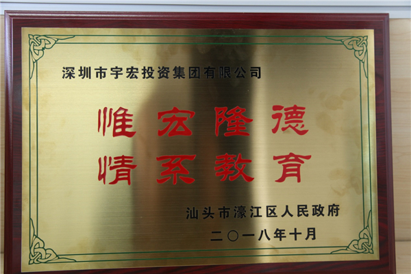 最后,濠江区委副书记连泽生赠予宇宏集团 “惟宏隆德 情系教育”牌匾。